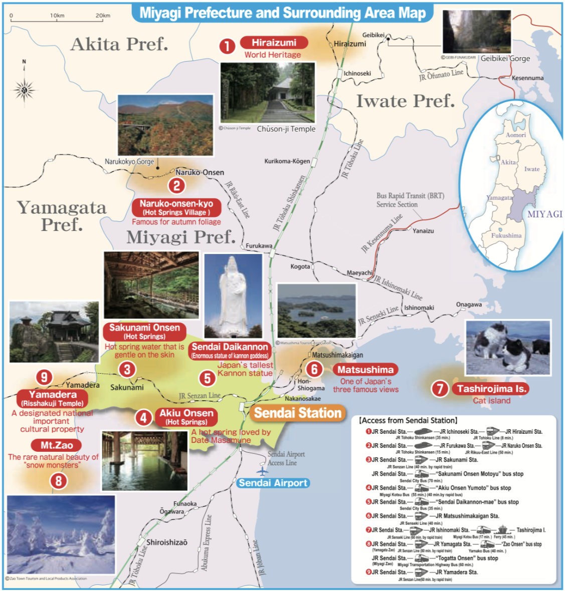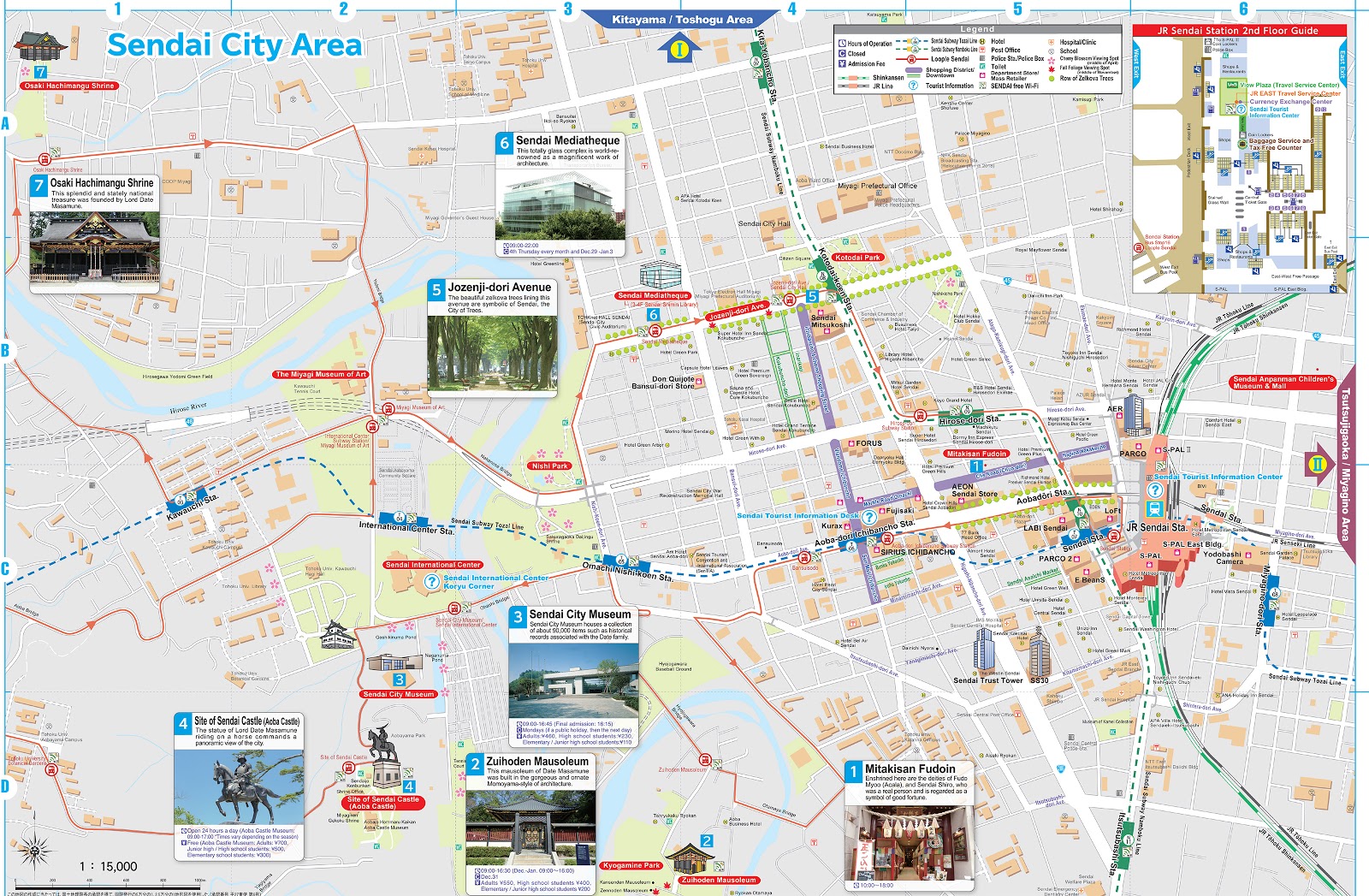 Below you can find maps of touristic attractions in Sendai and in Miyagi Prefecture: